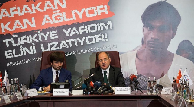 Başbakan Yardımcısı Recep Akdağ, basın toplantısında, bundan kısa bir süre önce Cumhurbaşkanı Recep Tayyip Erdoğan'ın eşi Emine Erdoğan ve Dışişleri Bakanı Mevlüt Çavuşoğlu ile AFAD Başkanı Güllüoğlu'nun başkanlığındaki bir heyetin, Arakanlıların Bangladeş'te göç ettiği yerlerde incelemelerde bulunduğunu anımsattı.