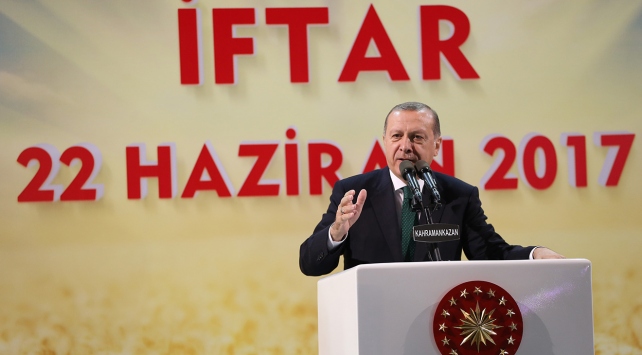 Oradan da dünyadaki bütün o FETÖ teröristlerini yönetiyor. Biz de dost bildiklerimize sesleniyoruz, verin. Eğer verilmeyecekse gün ola harman ola... Böyle bir milletin, hele hele o 15 Temmuz gecesini yaşayan böyle bir milletin bir mensubu olmaktan, cumhurbaşkanı olmaktan, böyle bir milletin hizmetkarı olmaktan iftihar ediyorum, Allah'ıma hamd ediyorum."