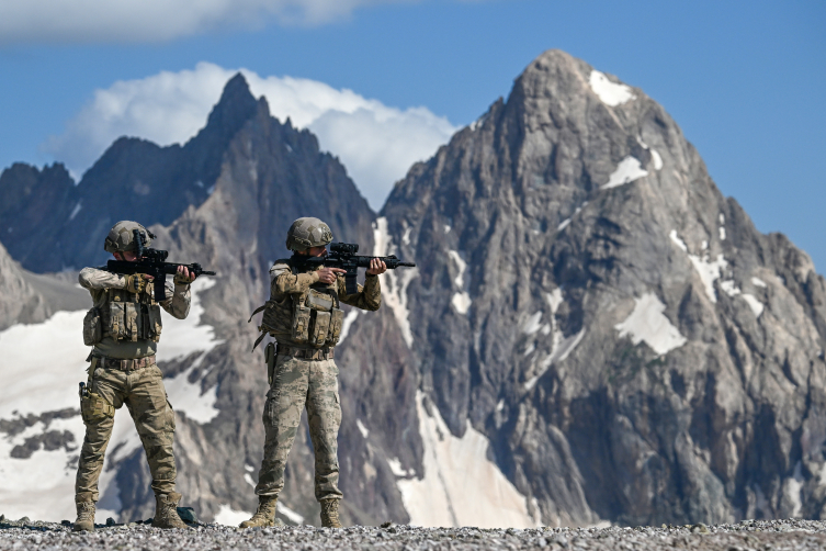 Yükseklik ve iklim nedeniyle metrelerce karın bulunduğu bölgede görevli jandarma komando ve güvenlik korucuları, terör faaliyetlerinin önlenmesi ve vatandaşların güvenliğinin sağlanması için gece gündüz nöbet tutuyor.