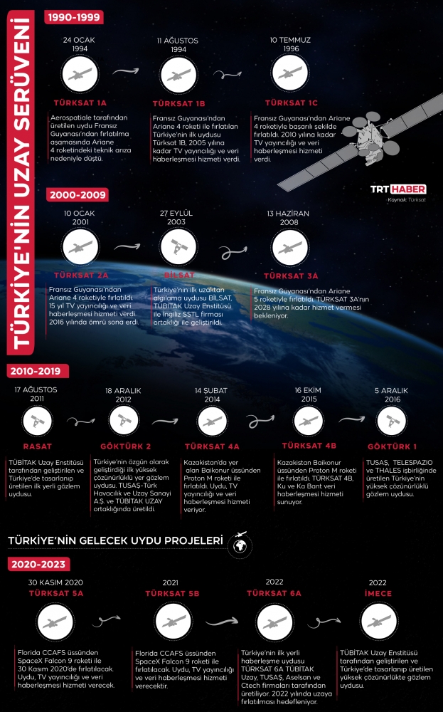 İlk başarılı hamlenin ardından Ankara bu alanda yoluna devam etti. Temmuz 1996’da TÜRKSAT 1C uzaya gönderildi. 10 Ocak 2001’de TÜRKSAT 2A’nın yörüngeye yerleştiği haberi uluslararası haber ajanslarının manşetlerini süsledi. Bu uydu Rusya’ya da kapsayacak şekilde görev yapması adına önemliydi ve 2016’ya kadar işini başarıyla sürdürdü.