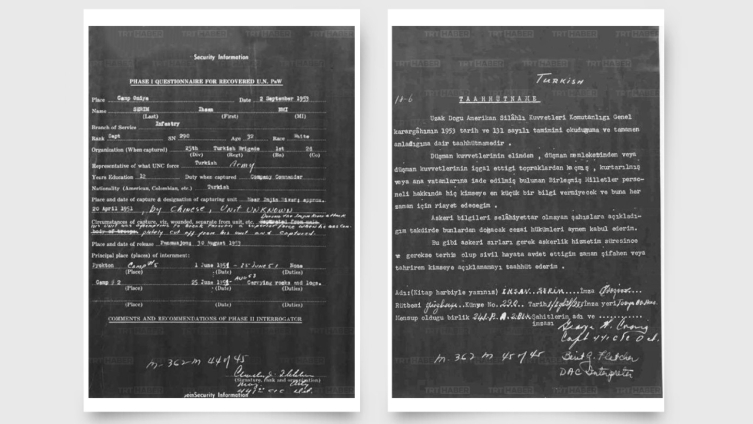 [Türk askerinin Kore'deki mücadelesi sadece bizim değil tüm dünyanın dikkatini çeken olaylardan biri.]ABD’den yeni gelen belgeler, Kore Savaşı’nda komünist Çin kuvvetlerine esir düşen en üst rütbeli iki askerimizden biri olan Yüzbaşı İhsan Serim’in esir takası sırasında Amerikan Askeri İstihbaratı tarafından yapılan sorgusunun tutanakları.