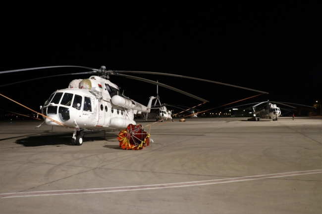 [Fotoğraf: AA]Daha fazla su taşıma kapasitesine sahip tek seferde bir bambide yaklaşık 3 ton su taşıyabilen helikopterler, alevlere müdahale için hazırlıklarına başladı.