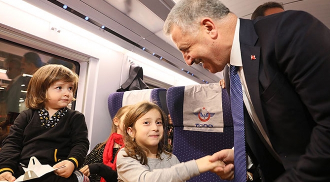 2017'de yüksek hızlı trenlerimizde 7 milyon, konvansiyonel trenlerde 14 milyon, Marmaray'da 63 milyon yolcu olmak üzere trenle 84 milyon yolcu taşımış olduk, Yüksek hızlı tren hizmete girdiğinden beri 39 milyon kilometre yol katetmiş, 37 milyon yolcuya hizmet etmiş durumdayız." ifadelerini kullandı.