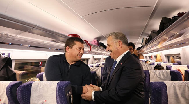 Arslan, 'Acenteler kapatıyor yer bulamıyoruz' algısı var, hayır. Çok olağanüstü ilgi var. Bir vagonu 4'e, 5'e çıkardığımız ortamda dahi insanlarımızı yer bulamayabiliyorlar. Biz vagon ilave etmeye devam edeceğiz. Bu ilgi bizi de memnun ediyor, vatandaşımız da memnun. İnsanlarımızın demiryoluyla, trenle seyahat etmeyi tekrar tercih eder hale gelmesi memnuniyet sebebimiz. Milletimiz treni yeniden keşfetti, biz de onlara konforlu seyahat sağlamak adına gece gündüz çalışmaya devam ediyoruz." dedi.