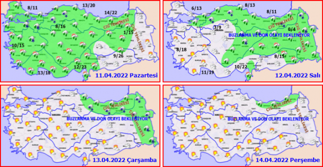 Hafta ortası Doğu Karadeniz ile Güneydoğu ve Doğu Anadolu'nun doğusunda yağışların yer yer kar şeklinde yağması bekleniyor. Perşembe günü ise yağışlar sadece Doğu Karadeniz'de görülecek. Kalan kesimlerin ise parçalı ve çok bulutlu olması öngörülüyor.