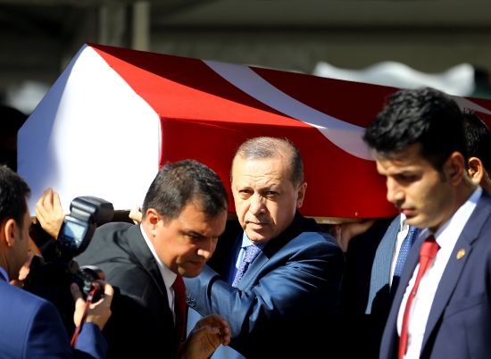 Mezara, Kemal Unakıtan'ın memleketi Edirne'nin Süloğlu ilçesine bağlı Domurcalı köyünden katılan hemşehrileri, anne ve babasının mezarlarından getirdiği toprağı serpti. AA