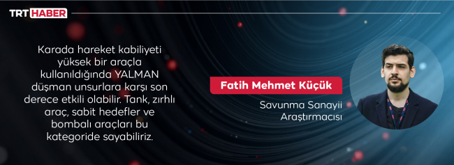 Küçük’e göre YALMAN, sahip olduğu elektro optik sistemlerle bir engelin arkasında saklanarak da saldırı yapabilecek kabiliyete sahip. Bu haliyle YALMAN’ın hem simetrik hem de asimetrik tehditlere karşı çok uygun bir sistem olduğu üzerinde öğreniyoruz.