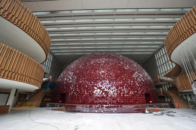 Girişinde yer alan dev küre, 15 bin özel seramik parçasından oluşuyor. Aynı zamanda çelik konstrüksiyona sahip. İçindeyse dev bir opera salonu var.