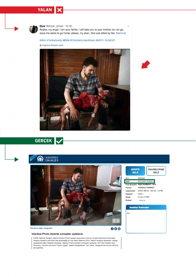 Kara propaganda hesaplarının "Afrin'de çocuklar saldırı altında" etiketiyle paylaştığı fotoğrafın, AA tarafından düzenlenen İstanbul Photo Awards 2016'da "seri haber" dalında ikinciliğe layık görüldüğü ortaya çıktı.