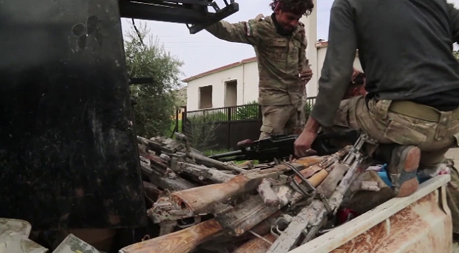 TSK ve ÖSO’nun haftasonu 20 dakikada teröristlerden temizlediği üslerde, teröristlerden geriye arabalar ve arabaların içindeki ağır makineli silahlar kaldı.