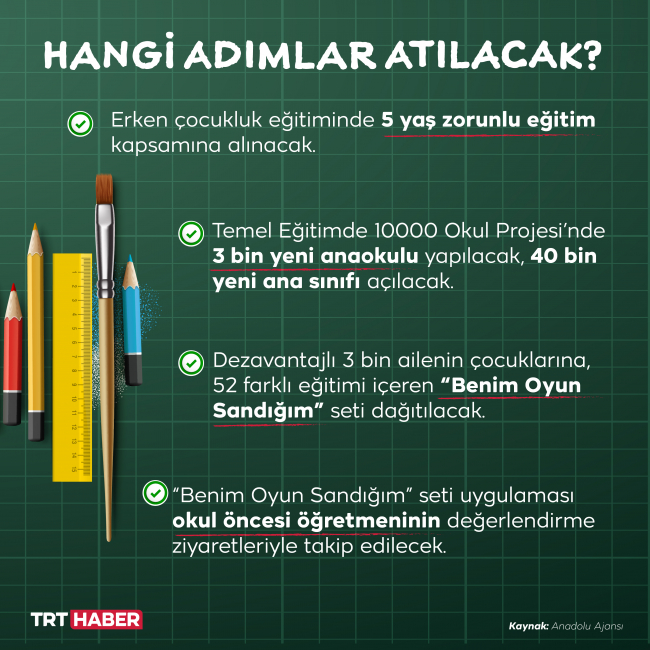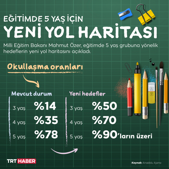 Milli Eğitim Bakanı Özer, eğitimde 5 yaş grubu için yeni yol haritasını açıkladı, "Anaokullarının 5 yaşındakiler için zorunlu hale getirilmesine yönelik plan ve bütçe çalışması yapıyoruz" dedi.