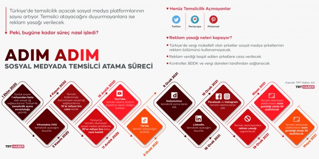 Türkiye'de temsilcilik açacak sosyal medya platformlarının sayısı artıyor. Temsilci atayacağını duyurmayanlara ise reklam yasağı verilecek. Peki, bugüne kadar süreç nasıl işledi?