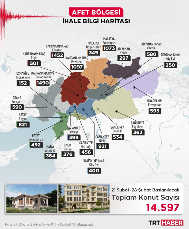 TOKİ, 21 -28 Şubat arasında 14 bin 597 deprem konutunun inşasına başlayacak.