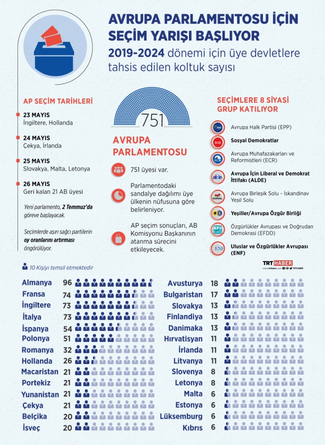 Avrupa Birliği (AB) genelinde 23-26 Mayıs arasında düzenlenecek Avrupa Parlamentosu (AP) seçimleri, bugün İngiltere ve Hollanda'da başladı.