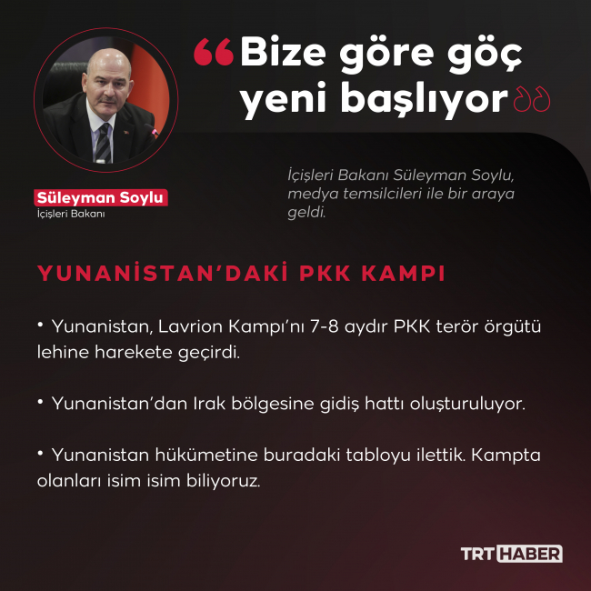 İçişleri Bakanı Süleyman Soylu, “Yunanistan Lavrion'u 7-8 aydır PKK terör örgütü lehine harekete geçirdi. Yunanistan’dan Irak bölgesine gidiş hattı oluşturuluyor.” dedi.