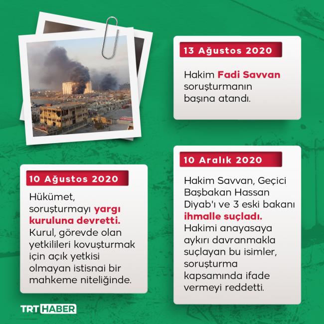 Beyrut Limanı'nda binlerce ton patlayıcı maddenin infilak etmesiyle meydana gelen dev patlamanın üzerinden bir yıl geçti. Beyrut'ta hasar hala gözle görülebiliyorken, patlamada hayatını kaybedenlerin yakınları sorumluların cezalandırılmasını istiyor.