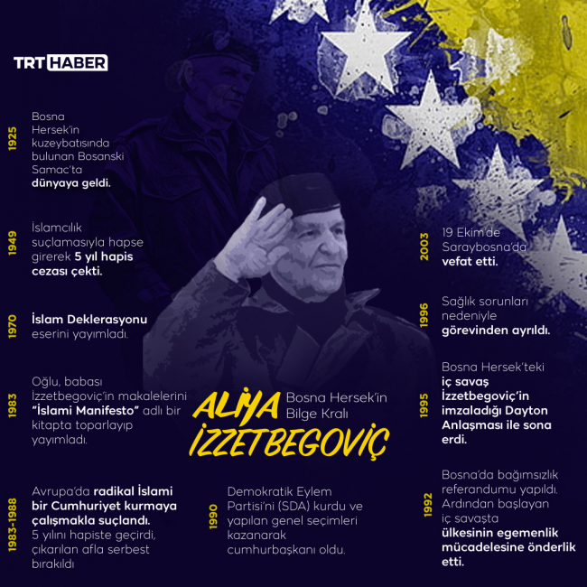 Halkına bağımsız bir devlet bırakan Bosna Hersek’in ilk cumhurbaşkanı Aliya İzzetbegoviç, 18 yıl önce hayatını kaybetti.