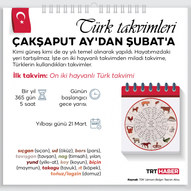 Çakşaput ay'dan Şubat'a Türk takvimleri