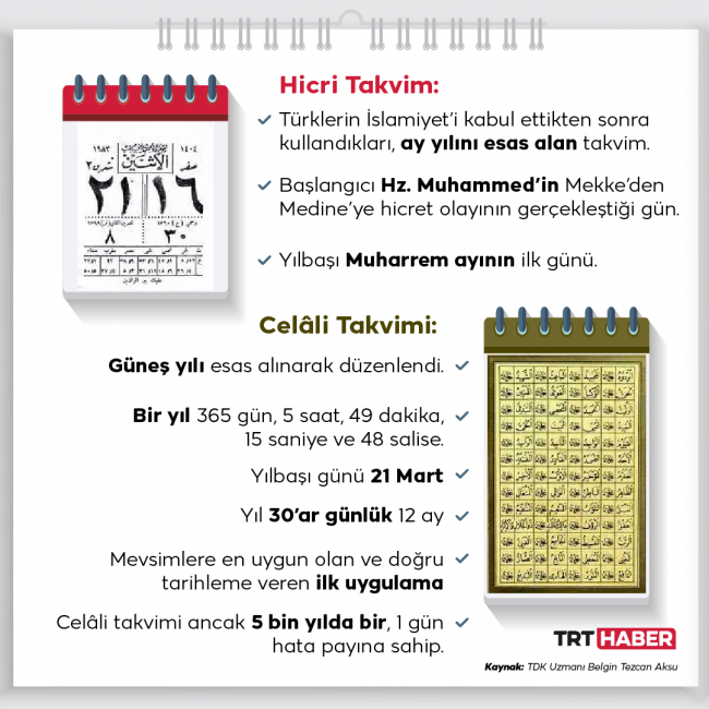 Kimi güneş kimi de ay yılı temel alınarak yapıldı. Hayatımızdaki yeri tartışılmaz. İşte on iki hayvanlı takvimden miladi takvime, Türklerin kullandıkları takvimler.
