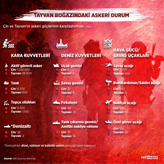 Tayvan son aylarda hava sahasının Çin tarafından sıkça ihlal edildiğini bildiriyor. Bölgede bir süredir devam eden gerginliğin taraflarından biri de ABD. Tayvan’la tekrar birleşme hedefindeki Çin ise askeri kapasitesini artırdıkça artırıyor.