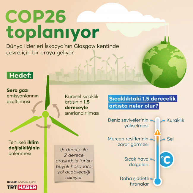 Dünya liderleri İskoçya’nın Glasgow kentinde çevre için bir araya geliyor. Hedefleri, küresel ısınmanın önüne geçebilecek önlemler için taahhütlerin ne kadar yerine getirildiğini görmek ve yol haritasını netleştirmek.