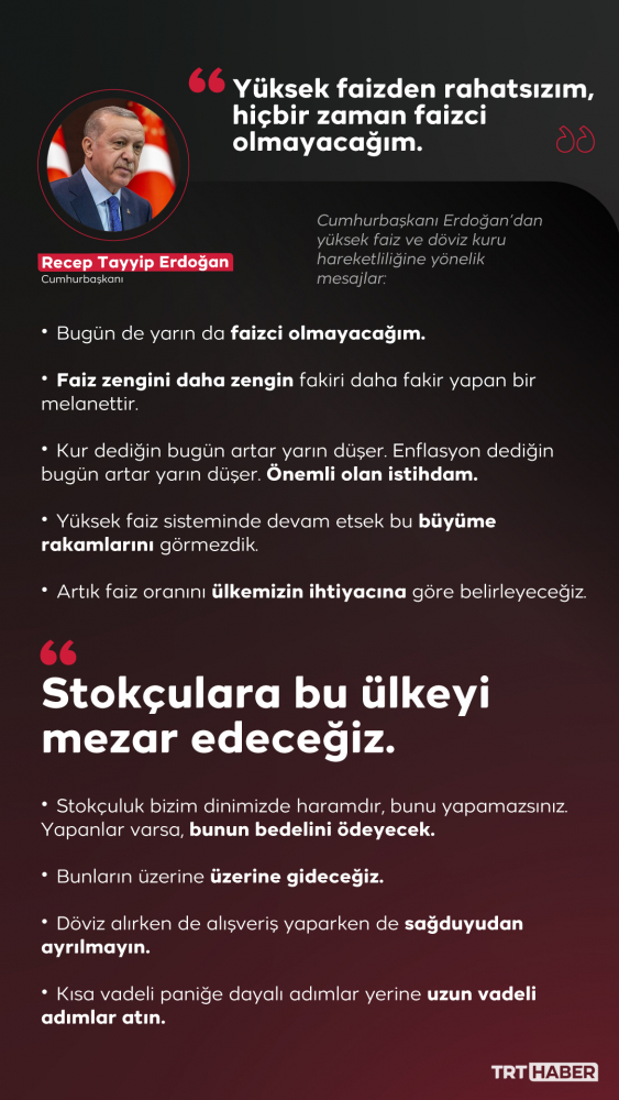 Cumhurbaşkanı Erdoğan: Yüksek faizden rahatsızım, hiçbir zaman faizci olmayacağım