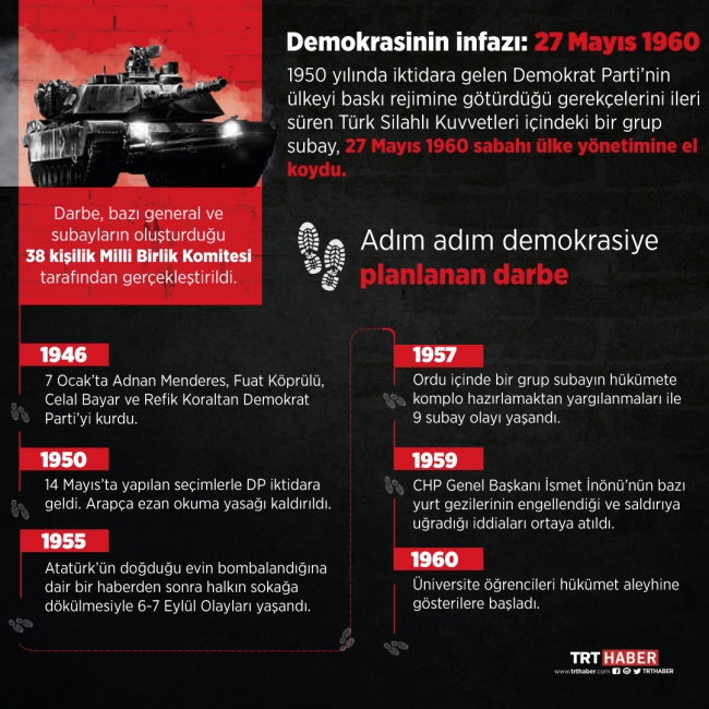 Aradan geçen 59 yıla rağmen 27 Mayıs 1960 ihtilalinin demokrasiye sürdüğü kara leke hala hafızalardaki tazeliğini koruyor.