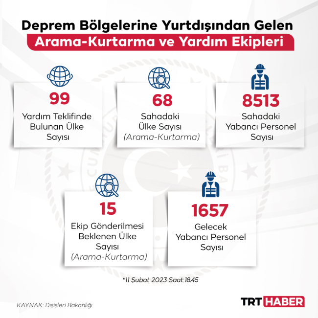68 ülke, 8 bin 326 personel... Dünyanın dört bir yanından Türkiye'ye yardım ekipleri geliyor.