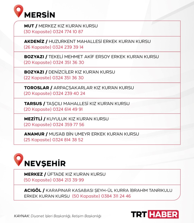 Depremzedeler Diyanet İşleri Başkanlığı’na bağlı Kur’an kursları ve akademi merkezlerine yerleştiriliyor.