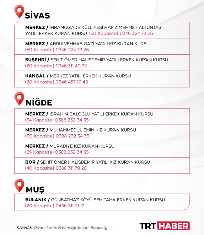 Diyanet İşleri Başkanlığı’na bağlı konaklama noktaları