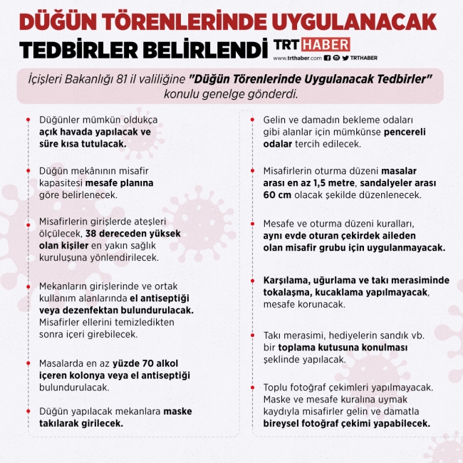 Düğün törenlerinde uygulanacak COVID-19 tedbirleri belli oldu