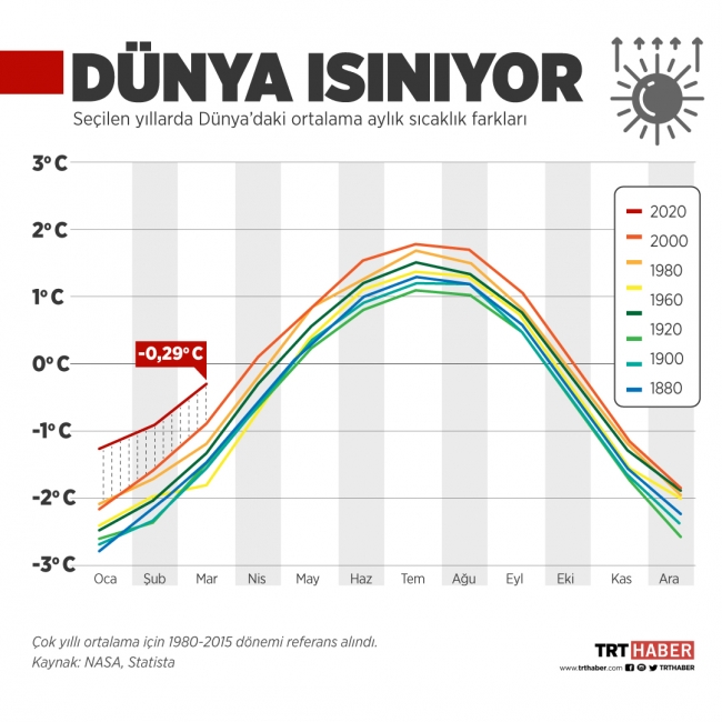 2020’nin en sıcak yıl olabileceğine dair tahminlerden sonra bir kez daha hatırlatmakta fayda var; Dünya git gide ısınıyor. NASA’nın tahminlerine göre inceleyelim.