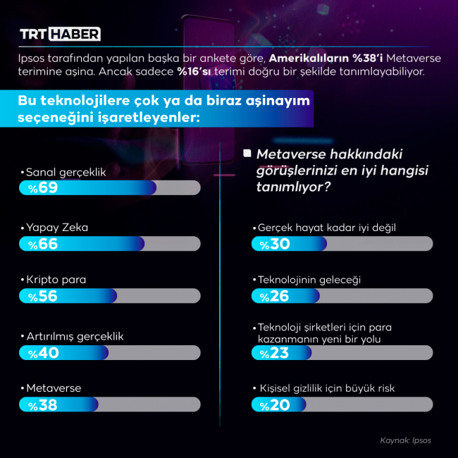 Son zamanlarda adını sıklıkla duymaya başladık. Henüz yeni ve biraz da kafa karıştıran bir teknoloji olan Metaverse ile ilgili yapılan araştırmalardan da ilginç sonuçlar çıkıyor. Peki, dünya metaverse kavramına nasıl bakıyor?
