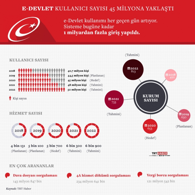 e-Devlet kullanıcı sayısı 45 milyon kişiye yaklaştı