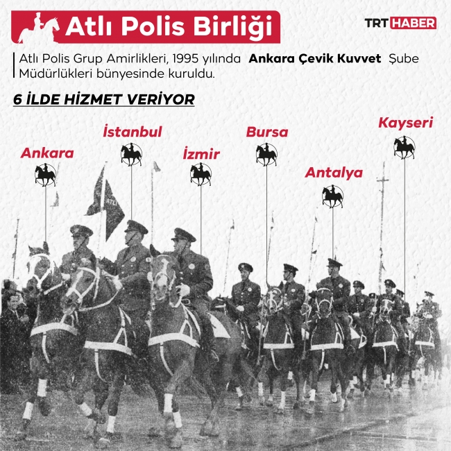 “Onlar bizim yol arkadaşımız“ bu sözler Ankara Atlı Polis Birliği ekiplerinin en sevdiği cümle… Devriyelerde, toplumsal olaylarda, resmi günlerde hep beraberler. Atlı polisler, sempatik oldukları kadar cüsseleri ile de caydırıcı bir ekip...