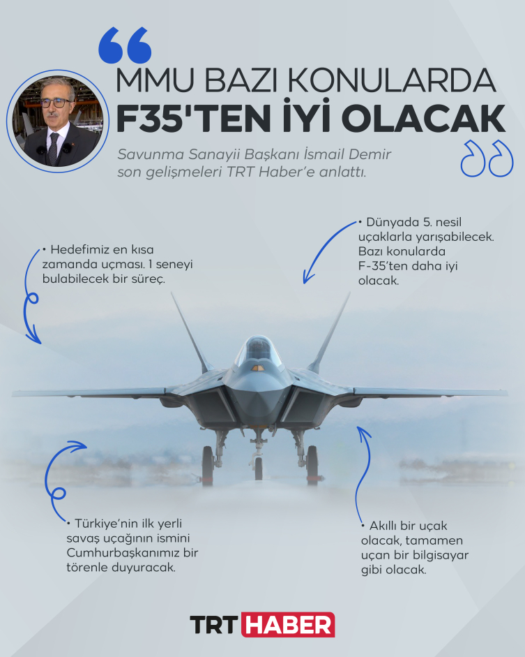 Savunma Sanayii Başkanı İsmail Demir son gelişmeleri TRT Haber’e anlattı: MMU bazı konularda F35’ten iyi olacak.