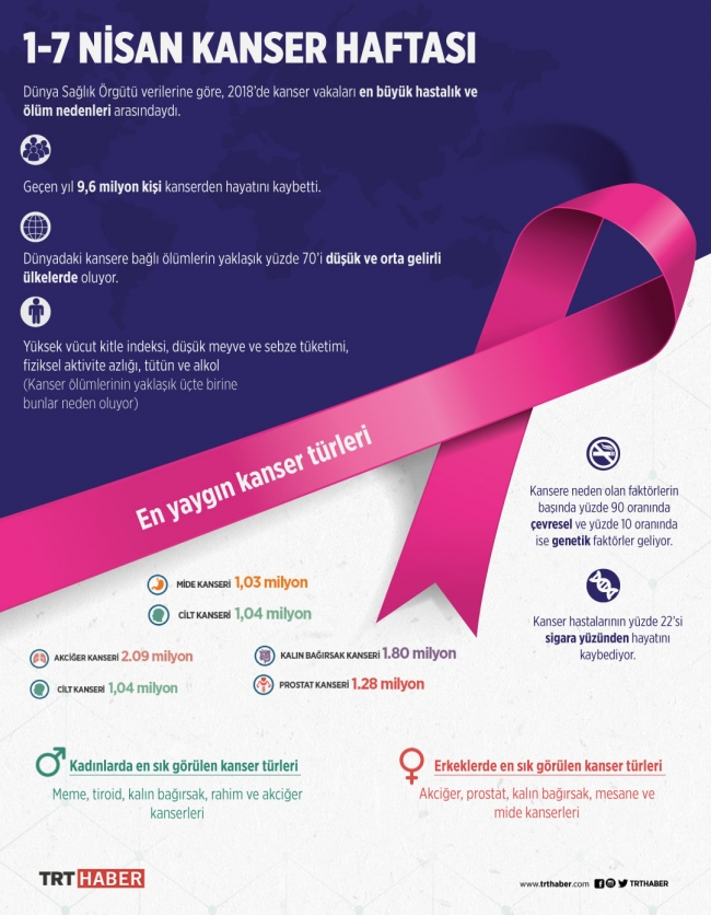Dünya Sağlık Örgütü verilerine göre, 2018’de kanser vakaları en büyük hastalık ve ölüm nedenleri arasındaydı. Geçen yıl 9,6 milyon kişi kanserden hayatını kaybetti.
