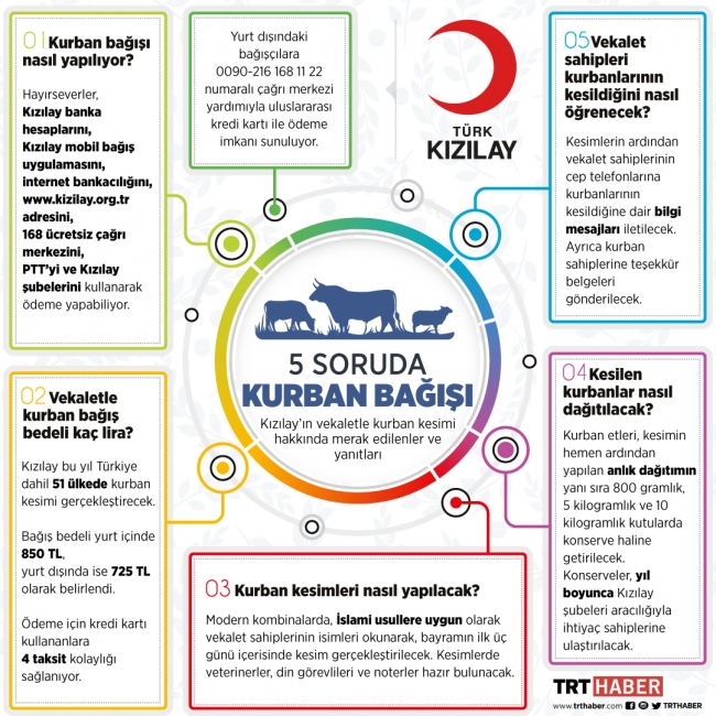Kurbanlarını vekalet yoluyla kesmek isteyenlerin tercih ettiği kurumların başında Kızılay geliyor. Vekalet bedeli yurt içinde 850 TL, yurt dışında ise 725 TL olarak belirlendi.