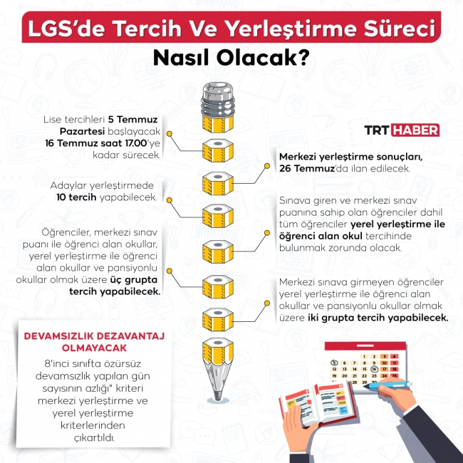 Milli Eğitim Bakanlığınca (MEB) 2021 LGS tercih ve yerleştirme kılavuzu açıklandı. Lise tercihleri 5-16 Temmuz arasında yapılabilecek.