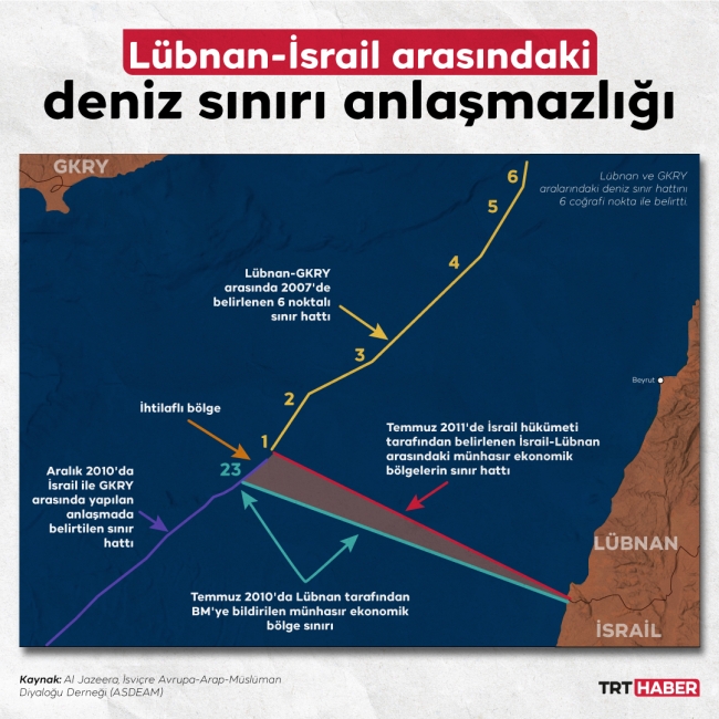 Güney Kıbrıs Rum Yönetimi ile ayrı deniz sınır anlaşmaları imzalayan Lübnan ve İsrail, aralarında çıkan sınır ihtilafını 2020'de yaptıkları müzakerelerde çözüme kavuşturamadı. Bir süre daha devam edeceği tahmin edilen bu sorunu mercek altına aldık.