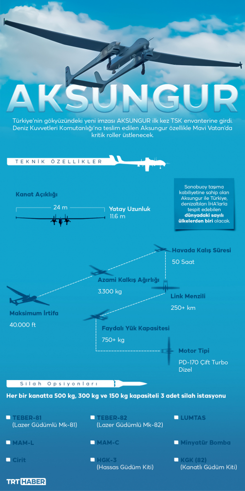Deniz Kuvvetleri Komutanlığı'na teslim edilen Aksungur Mavi Vatan için büyük önem taşıyor. Aksungur’un taşıyacağı Sonobuoy platformu, Türkiye’yi İHA’dan denizaltı tespiti yapabilecek sayılı ülkelerden biri haline getiriyor.