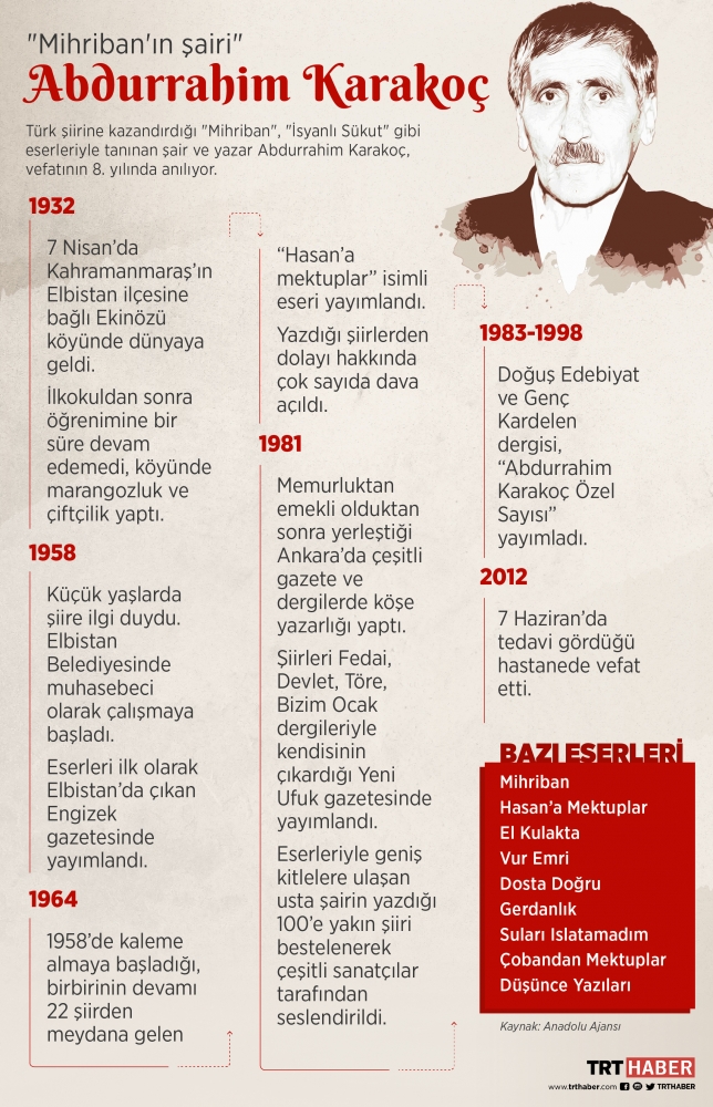 Türk şiirine kazandırdığı "Mihriban", "İsyanlı Sükut" gibi eserleriyle tanınan şair ve yazar Abdurrahim Karakoç, vefatının 8. yılında anılıyor.