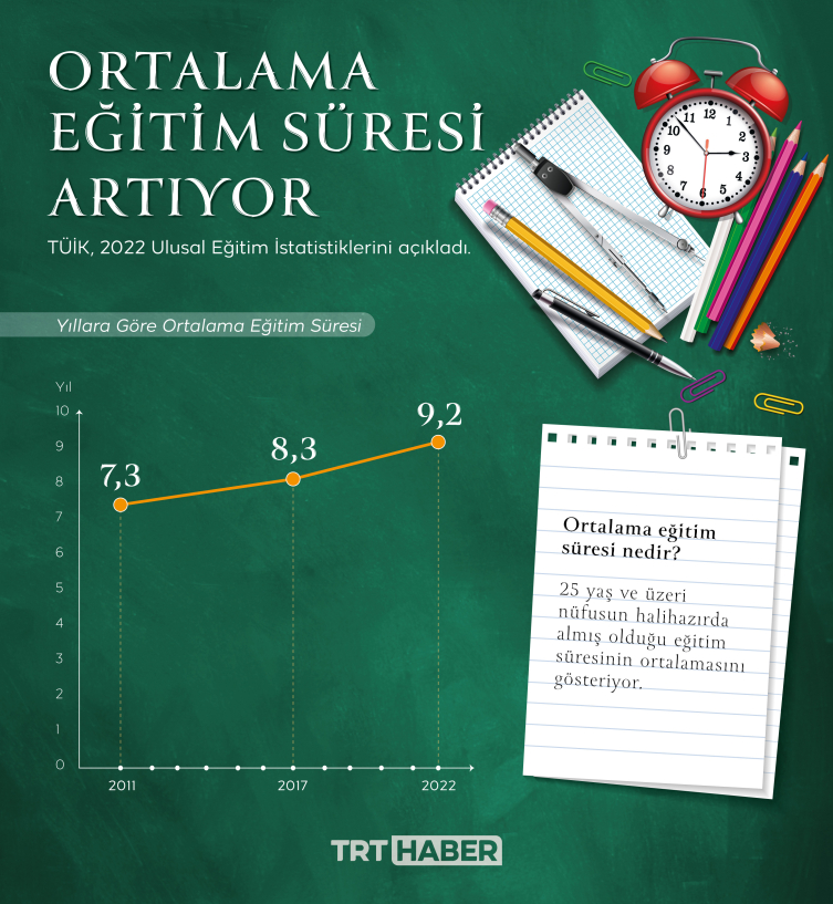 Türkiye'de okuma yazma bilenlerin oranı geçen yıl itibarıyla yüzde 97,6'ya çıkarken ortalama eğitim süresi en yüksek il Ankara oldu.