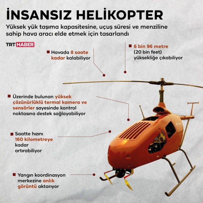 Tarım ve Orman Bakanlığının bu yıl hizmete aldığı insansız helikopter, Antalya'nın Manavgat ilçesindeki yangınla mücadelede kullanıldı.