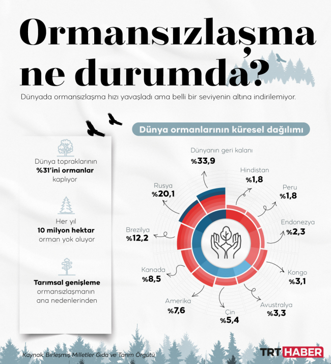 Gezegenin bir ucundaki ormansızlaşma diğer ucunu etkiliyor çünkü bu küresel bir sorun ve en büyük sebeplerinden biri tarım. Olası bir gıda krizi, daha fazla orman arazisinin tarıma açılması ve tarımsal verimliliğin düşmesi gibi sebepler sorunu derinleştirebilir.
