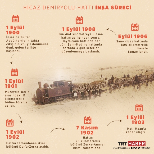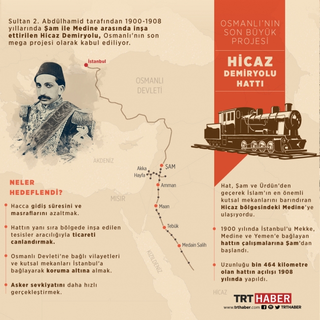 Sultan 2. Abdülhamid tarafından 1900-1908 yıllarında Şam ile Medine arasında inşa ettirilen Hicaz Demiryolu, Osmanlı coğrafyasındaki demir yollarından en önemlisiydi.