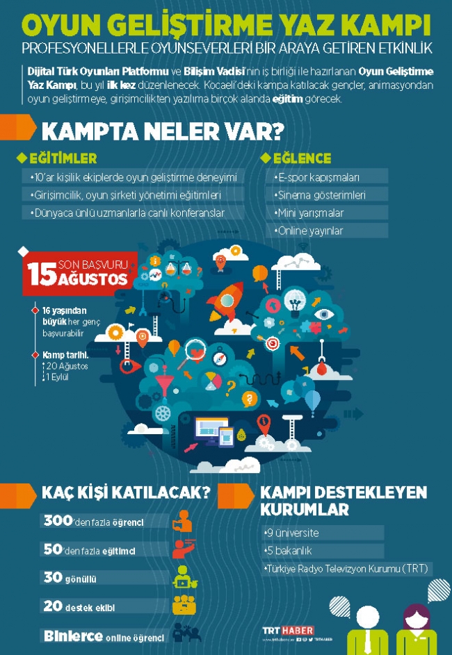 Dijital Türk Oyunları Platformu ve Bilişim Vadisi'nin iş birliği ile hazırlanan Oyun Geliştirme Yaz Kampı, bu yıl ilk kez düzenlenecek. Kocaeli'deki kampa katılacak gençler, farklı alanlarda eğitim görecek.