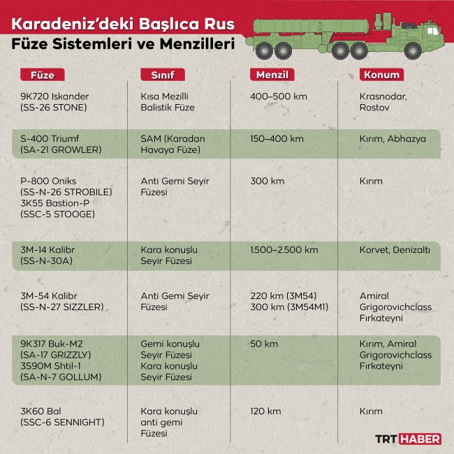 Karadeniz çevresinde Sovyetler Birliği'nden miras alınan sorunlara sert güçle müdahale eden Rusya, hem donanmasını güçlendiriyor hem de çok sayıda füze sistemini bölgeye konuşlandırıyor.
