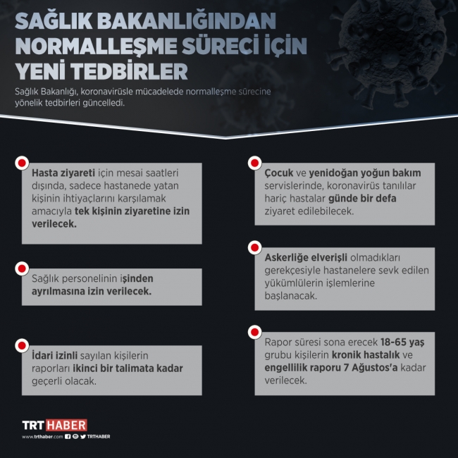Sağlık Bakanlığı, koronavirüsle mücadelede normalleşme sürecine yönelik tedbirleri güncelledi.