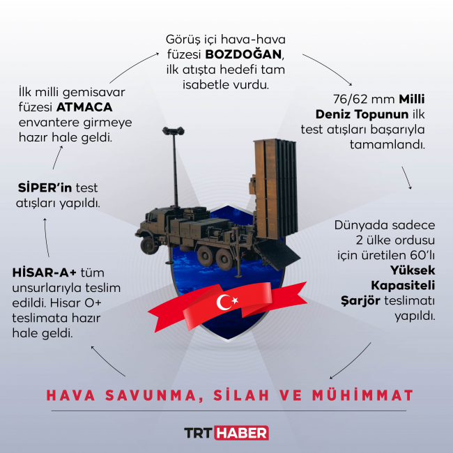 Türkiye’nin sadece ekonomisinde değil diğer alanlarında da önemli yeri olan yerli ve milli savunma sanayiinde 2021 yılı başarılarla geçti. Birbirinden farklı ihtiyaçlarda ortaya konan çözümler Ankara’yı gelecek hedeflerine bir adım daha yaklaştırdı.